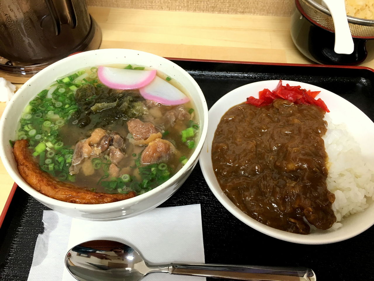 早速、かしわうどんとカレーのセット900円を。