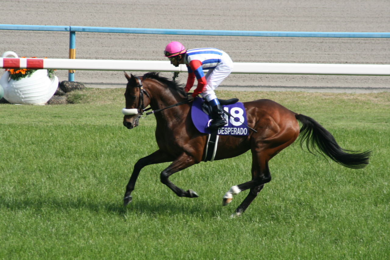 2014年05月06日 デスペラード 平成26年5月4日 天皇賞(春) 京都競馬場 本馬場入場後の返し馬。昨年と違い、堂々の5番人気でしたが、結果はブービー。たぶん、展開のアヤでした。外から被せられて身動きとれずで、馬もやる気がなくなっていたような感じ。最後は勝負ありで、騎手も追ってなかった感ありあり。でもねぇ、もう少し着順が上だと良かったけどなぁ。もちろん直接、撮影しました(笑)一脚も三脚も使わない望遠なので、ちょいと手ブレしてます。 「(馬)JRAたまに予想&栗東・安達厩舎」カテゴリの最新記事