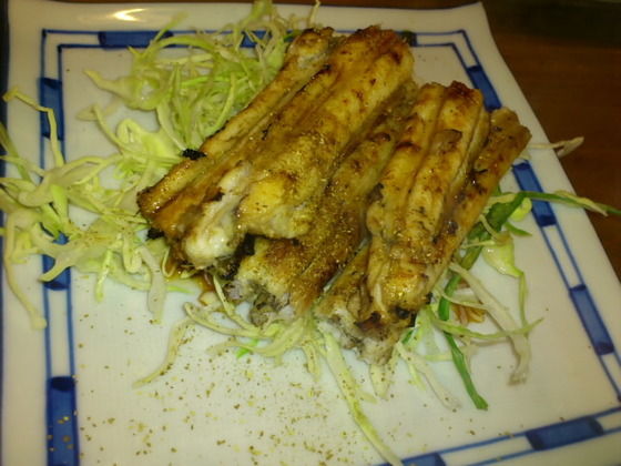 2015年06月13日 炉ばた焼 まんなおし 「まんなおし」っていう名の店って、アチコチにあるねぇ。特に気にしてなかったのだが、改めて・・・なんていう意味?(汗)縁起直しって言う意味があるのね。北九州も小倉や戸畑にあるが、ここは下関。仕事帰りに大回り。同僚の案内で、下関駅から厚生年金病院方向へ500mくらい?大通りから裏路地に入ったトコにあった。 牡蠣と関門穴子 アスパラと「バーベキュー」串 刺身は・・・確かオコゼじゃなかったかな。だい酩酊してたので・・・。唐揚げは手羽から揚げ? 締めに、焼そば(笑) 他にポテサラとか食べたような・・・・? 今回、確か、4-5000円くらいじゃなかったかな。同僚によると意外といったとか(笑)普段はコース利用らしくて、さらに安くてオトクみたい。魚は新鮮で、美味しいのは確か。ちょいと駅から離れてるけどお客さんも多く、満席お断りになってた。 で、この少し先に、あの「夜専」ラーメン店がある訳で、もちろん、行きました(笑) 下関市今浦町5-16 /定休・? 「(食)山口県」カテゴリの最新記事