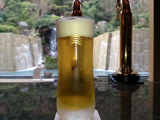 ちゃんと種類もあり広い内湯に、露天風呂、ジャグジー。風呂のあとはラウンジでビール。