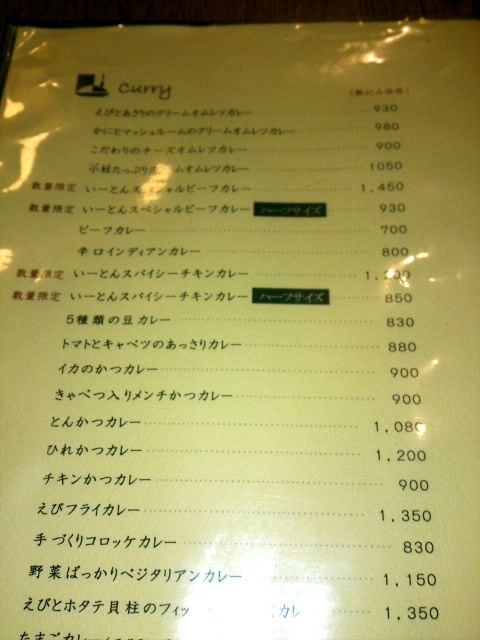メニュー いーとんと言えば、以前も食べたことがあるスペシャルビーフカレー・・・と行き