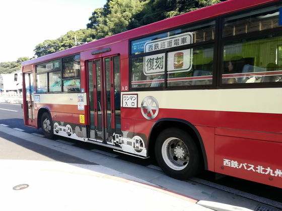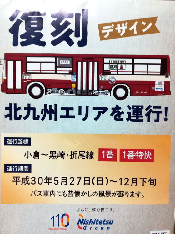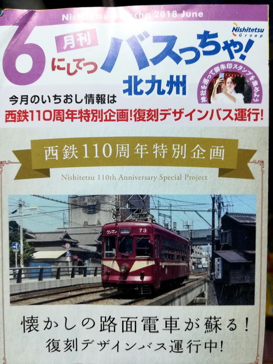 西鉄110周年特別企画で、北九州はこの路面電車デザイン。博多は、大牟田線デザ