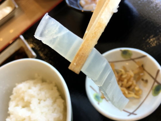 コリコリしたイカの歯ごたえと、ほんのり甘く(醤油が甘いのもあるが・笑)こりゃ、旨い。
